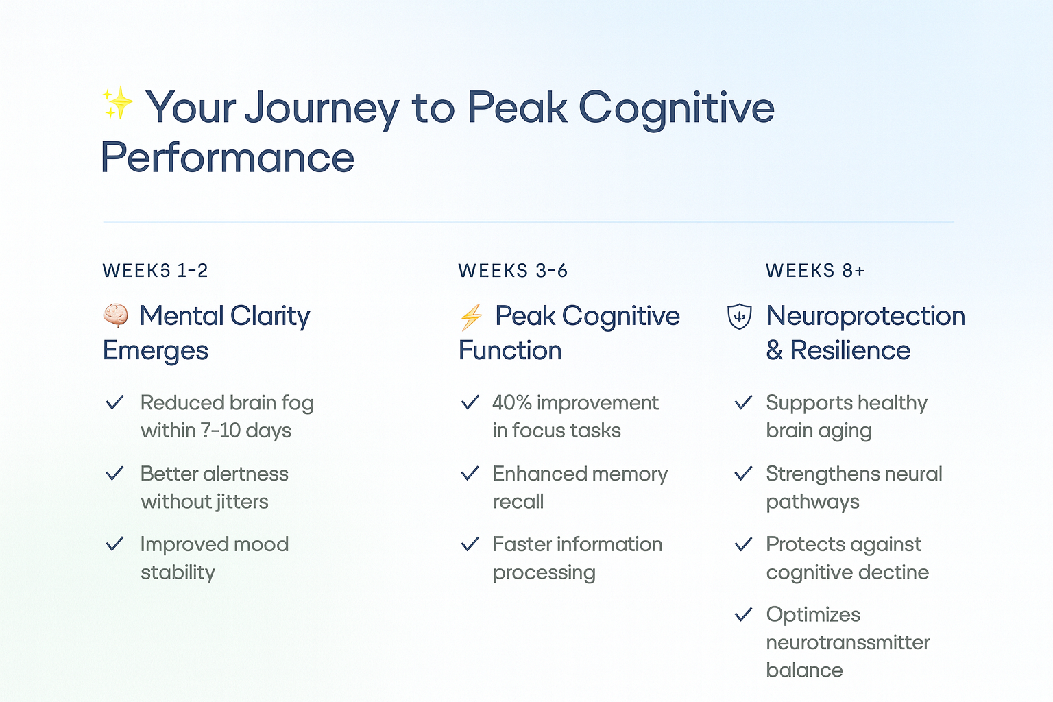 - Month 2+: Optimal cognitive performance and long-term benefits